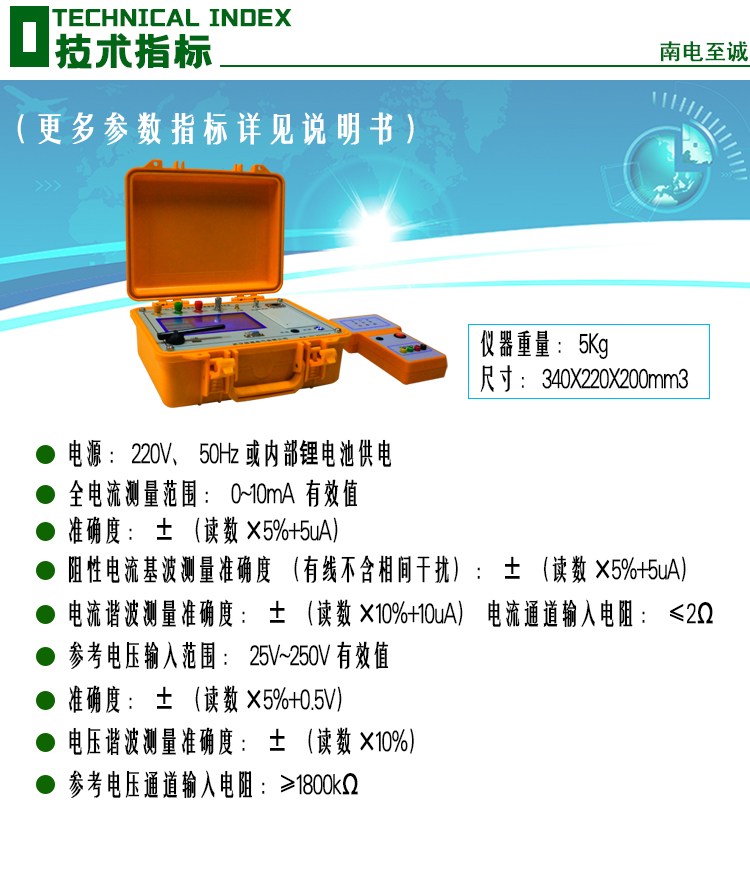 >阻性电流基波测量准确度(有线不含相间干扰):±(读数×5%+5uA)