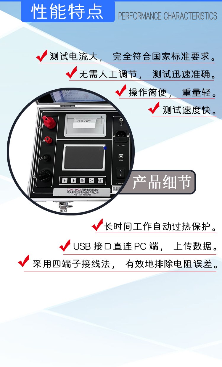 HLY-100A型回路电阻测试仪测量准确、性能稳定,适合电力、供电部门现场高压开关维修和高压开关厂回路电阻测试的要求。