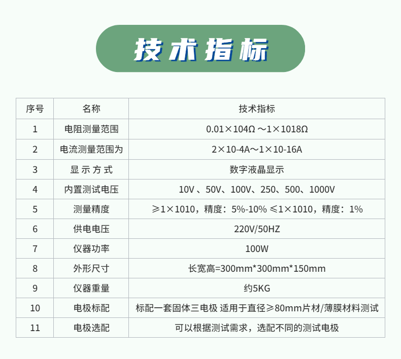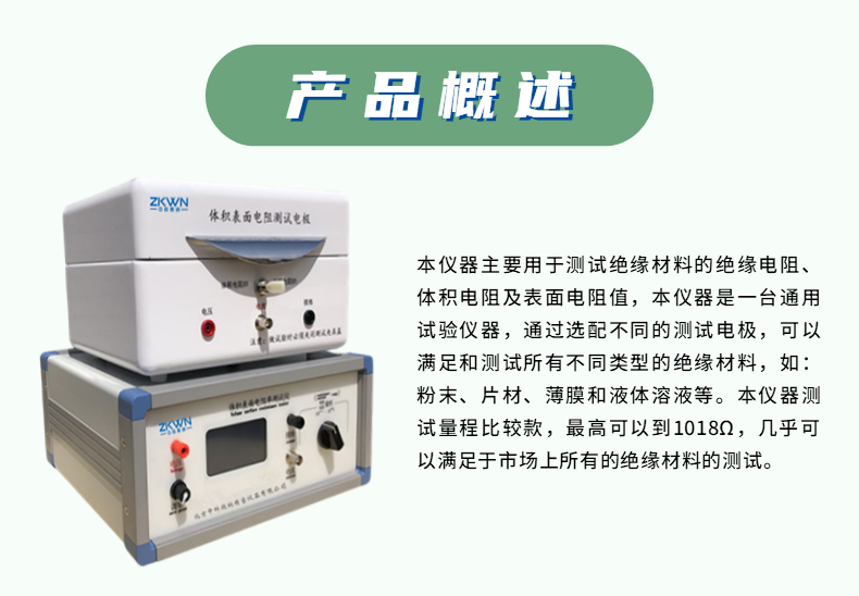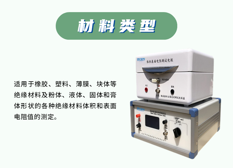 适用于橡胶、塑料、薄膜、块体等绝缘材料及粉体、液体、固体和膏体形状的各种绝缘材料体积和表面电阻值的测定。