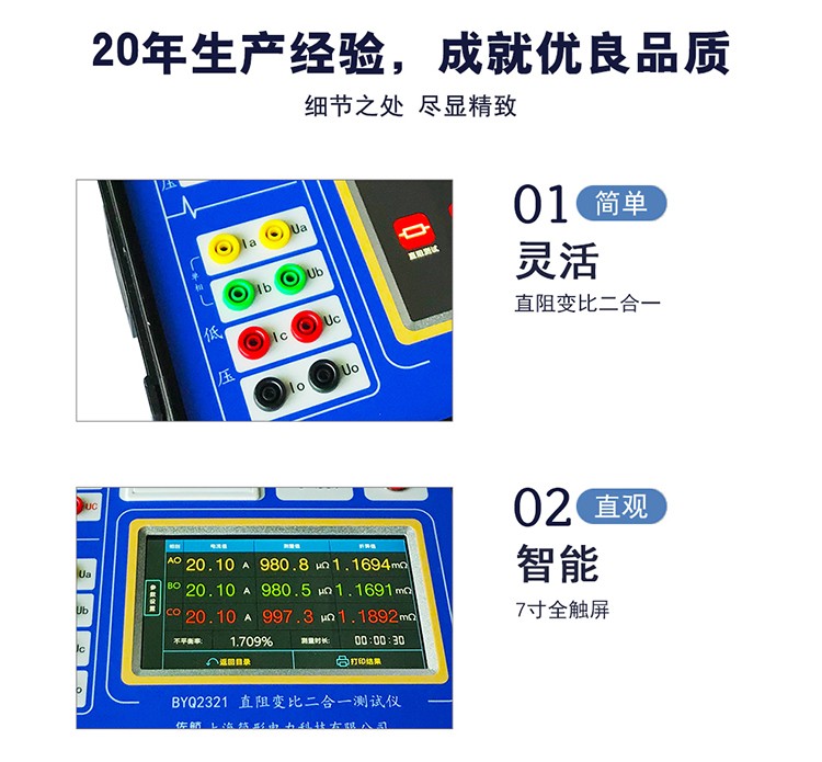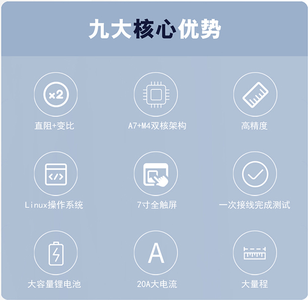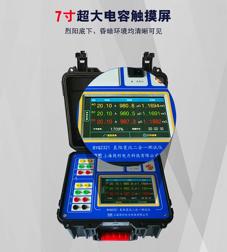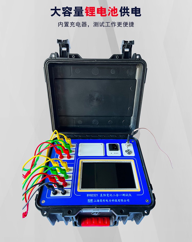我公司创新性的研发出大容量锂电池供电的二合一配电变压器测试系统(直阻+变比),我们仅需要一套设备,可以完成两个项目的测试,不需要频繁的拆接测试线。