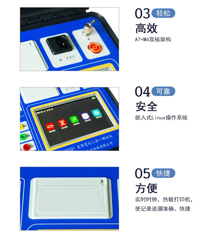 3 变比测试功能,具有三相、单相、Z型变压器、PT变比测试功能;