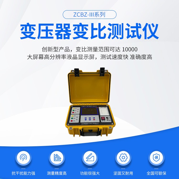 ZCBZ-III武汉变压器变比测试仪有售是针对电力系统的三相变压器、特别是Z型绕组变压器和其它空载电流比较大的变压器设计的。仪器的测试量程宽,速度快,重复性好,数据处理灵活,联机方便,保护完善,易于学习,操作方便。