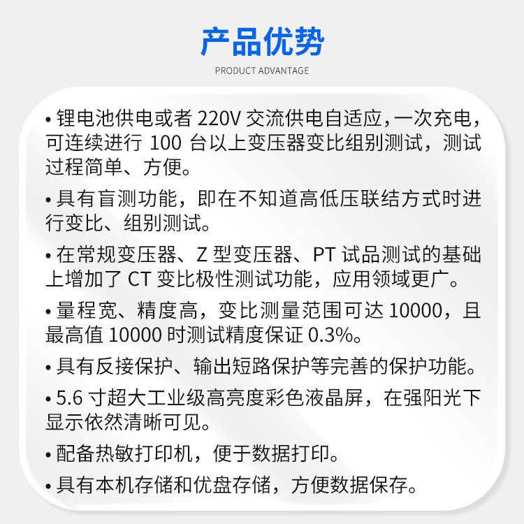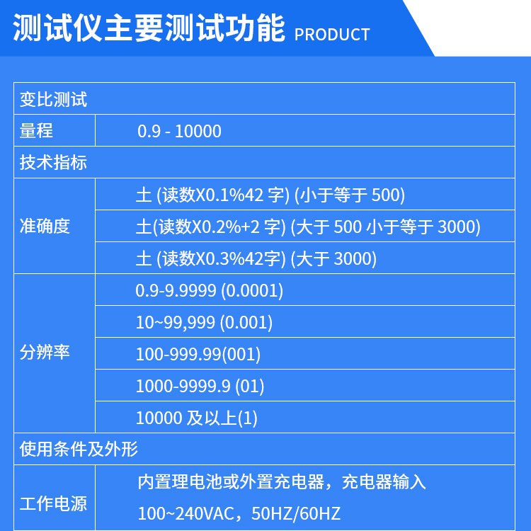 >变比测试范围: 0.8~10000