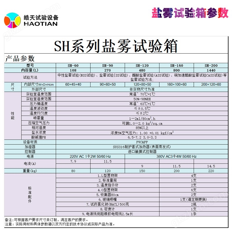调和室:采用钛合金加热器,循环风机送风循环,P.I.D 控制加热量从而达 到温度平衡 试验室:采用钛合金发热管,空气直接加热方式,P.I.D 控制加热量从而达到温 度平衡 压力桶:采用钛合金发热管,水加热方式,压缩空气进入热水中,以气泡形式溢 出,P.I.D 控制加热量从而达到恒定温度及纯净的喷雾用气体。