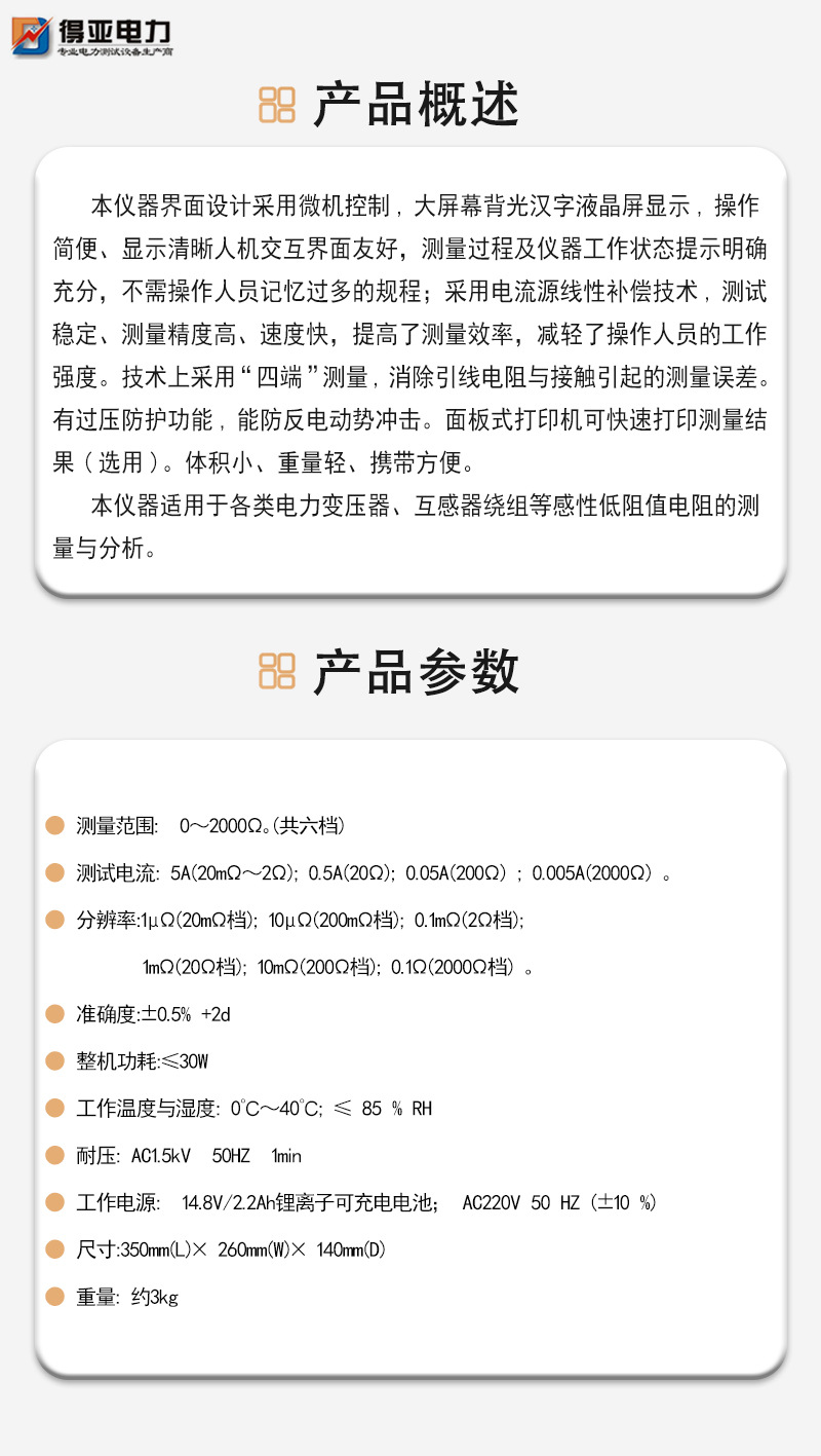 本仪器适用于各类电力变压器、互感器绕组等感性低阻值电阻的测量与分析。