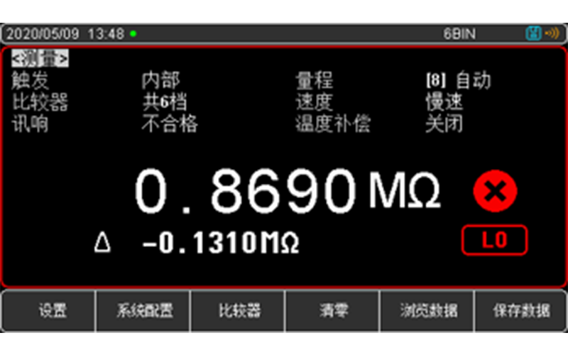 内置10档比较器输出(UT3516):6个合格档(BIN1~BIN6),3个不合格档(NG, NG LO, NG HI,1个总合格档(OK)。