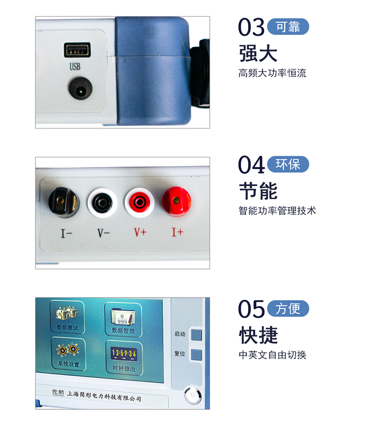 4、测试电流来自高精度的大电流恒流电源,无需人工调节,测试迅速准确。