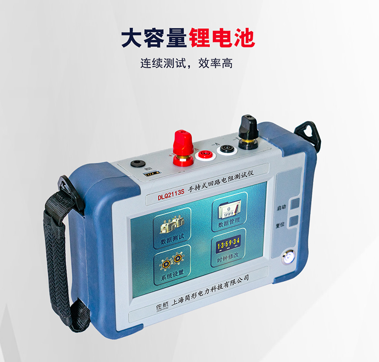 佐航DLQ2113S手持式回路电阻测试仪是公司根据IEC标准及中华人民共和国电力执行标准DL/T845.4- 2004有关规定,发挥自身技术优势,精心研制的高精度、数字化开关检测仪器。该仪器采用高频大功率恒流开关电源技术,可测得微欧姆级接触电阻。广泛适用于各种开关及电器的接触电阻、回路电阻及电缆电线、焊缝接触电阻的测量,仪器测量数据准确,性能稳定,满足电力、供电部门现场高压开关维修和高压开关厂回路电阻测试的要求。输出电流和测量电阻同时输出在七寸高亮度触摸彩色液晶上,测量结果即可电压输出也可U盘存储,掉电存储可满足随时数据查询。
