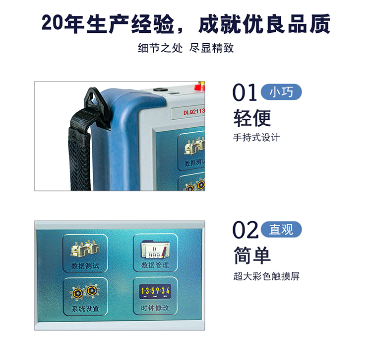 8、仪器自带万年历时钟和掉电存储,可存储1000组测试数据,随时查阅