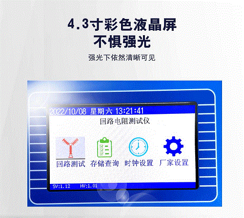 3. 4.3寸超大工业级高亮度彩色液晶屏,在强光下显示依然清晰可见。