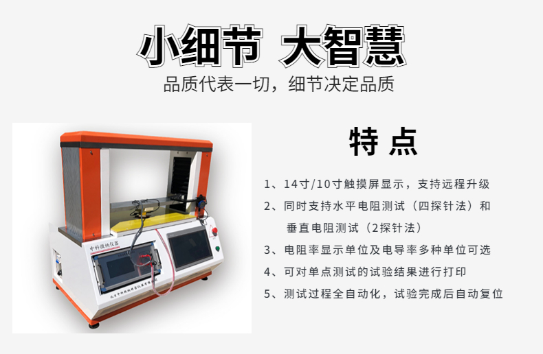 本仪器完全依据用户的实际测试需求研发,为用户降低的采购成本,本仪器既可以测试垂直方向电阻率,也可以测试水平方向电阻率,真正实现了一台设备,解决炭纸、双极板电阻特性的测试需求。