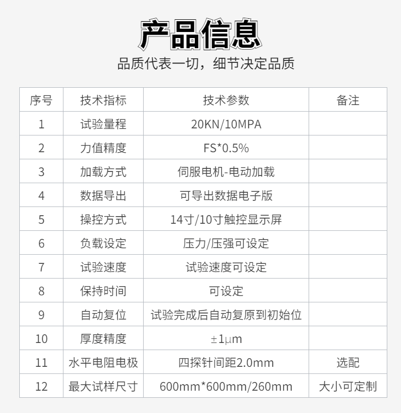 1、力值加载系统:由伺服电机为动力源进行加载,精确控制压力,无噪音,连续加载
