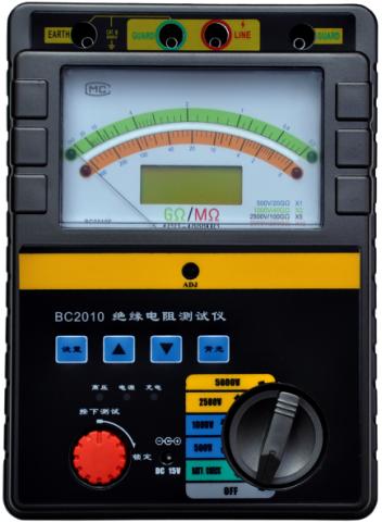 1、 有多种电压输出选择BC2305(250V/500V/2500V/5000V)、BC2306(5000V/10000V),测量电阻量程范围可达0~400GΩ。