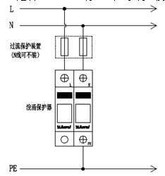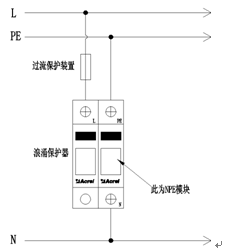 单相电源(RCD之前)TN、 IT(有N线)系统1+1(N-PE)模块连接方式: