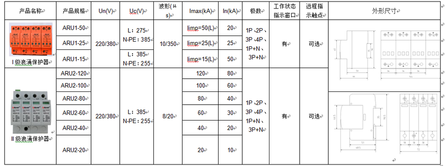 安科瑞二级防雷浪涌保护器ARU2-40/385/1P 不带遥信接点点击次数:144