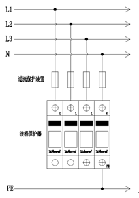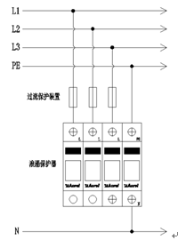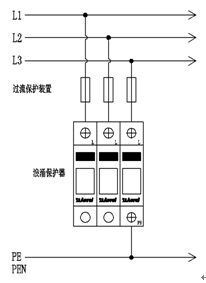 三相电源(RCD之前) TT、IT(有N线)系统3+1(N-PE)模块接线方式: