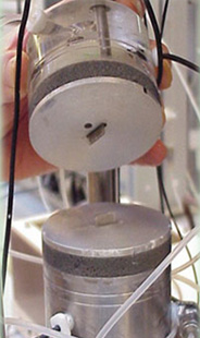 GDS 弯曲晶片被包装固定在试样帽或底座的“插入物”中。试样帽的插入物由钛制成,可以提供很高的轴向硬度,与用不锈钢制成的底座插入物相比,重量轻了一半。这可以将对轴向载荷的影响降到最小。